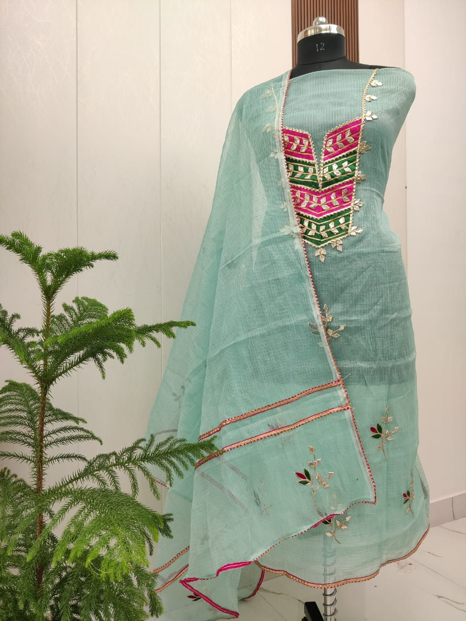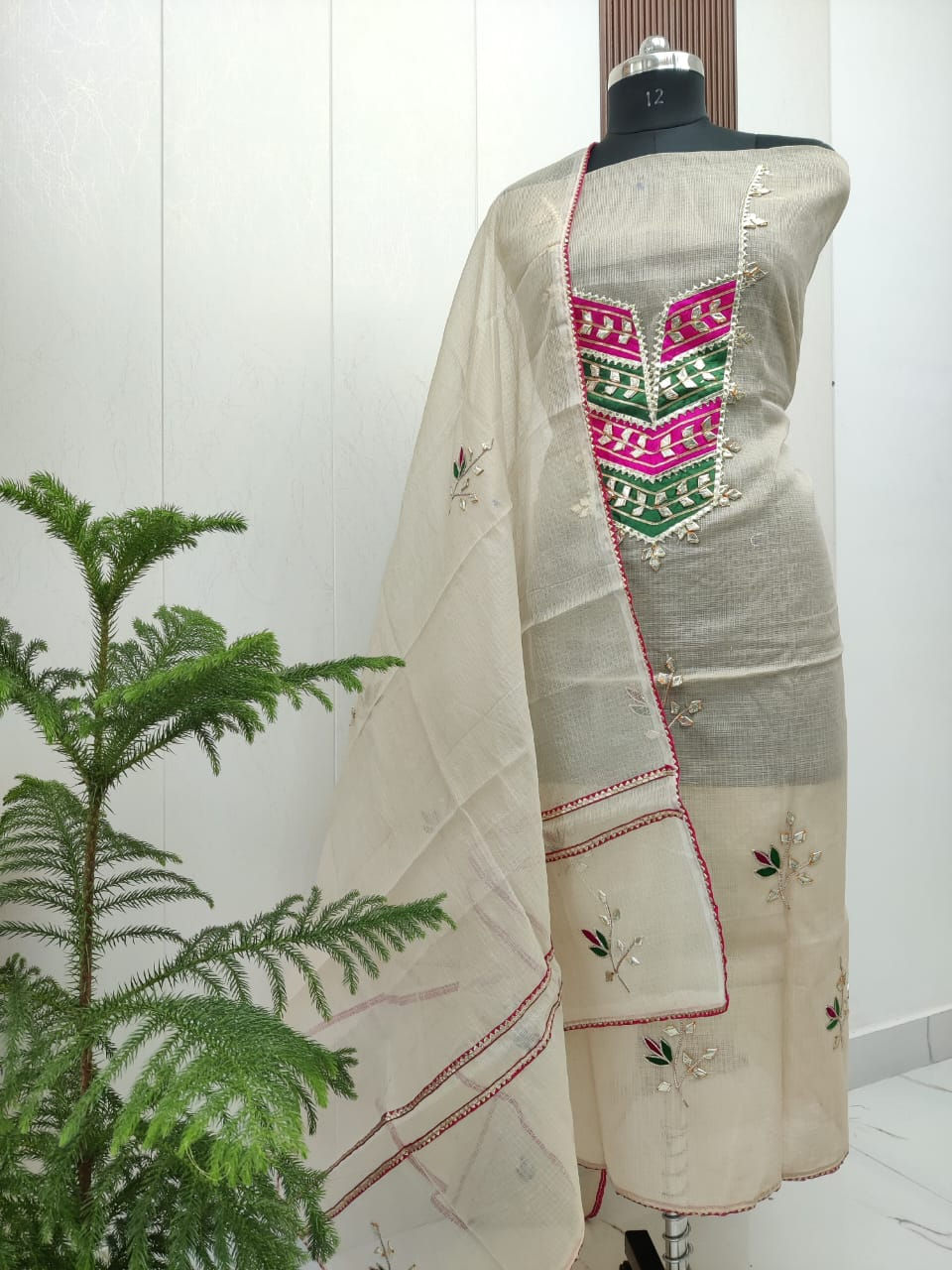 Kota Doria Soft Cotton Dress Material with Kachi Patti Work